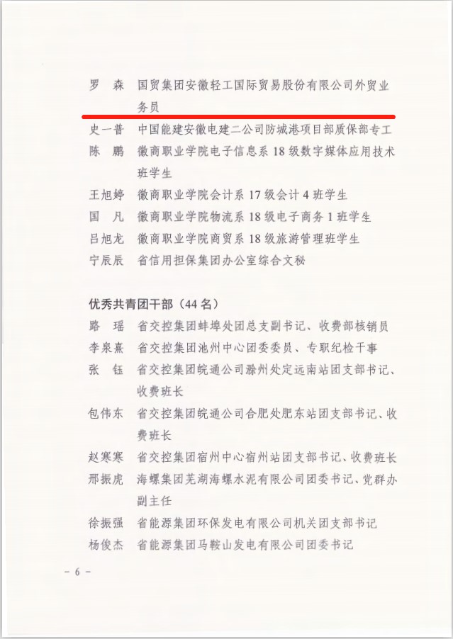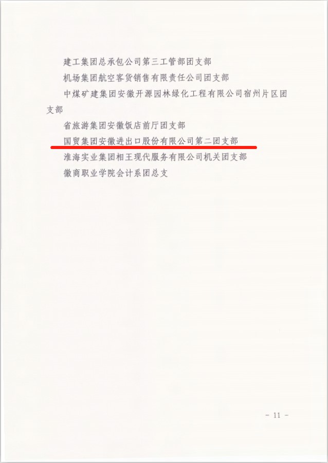 在此次表彰中,省進出口公司第二團支部榮獲“五四紅旗團支部”榮譽稱號,安糧集團趙夢晶同志榮獲“優(yōu)秀共青團干部”榮譽稱號,輕工國際羅森同志榮獲“優(yōu)秀共青團員”榮譽稱號。
