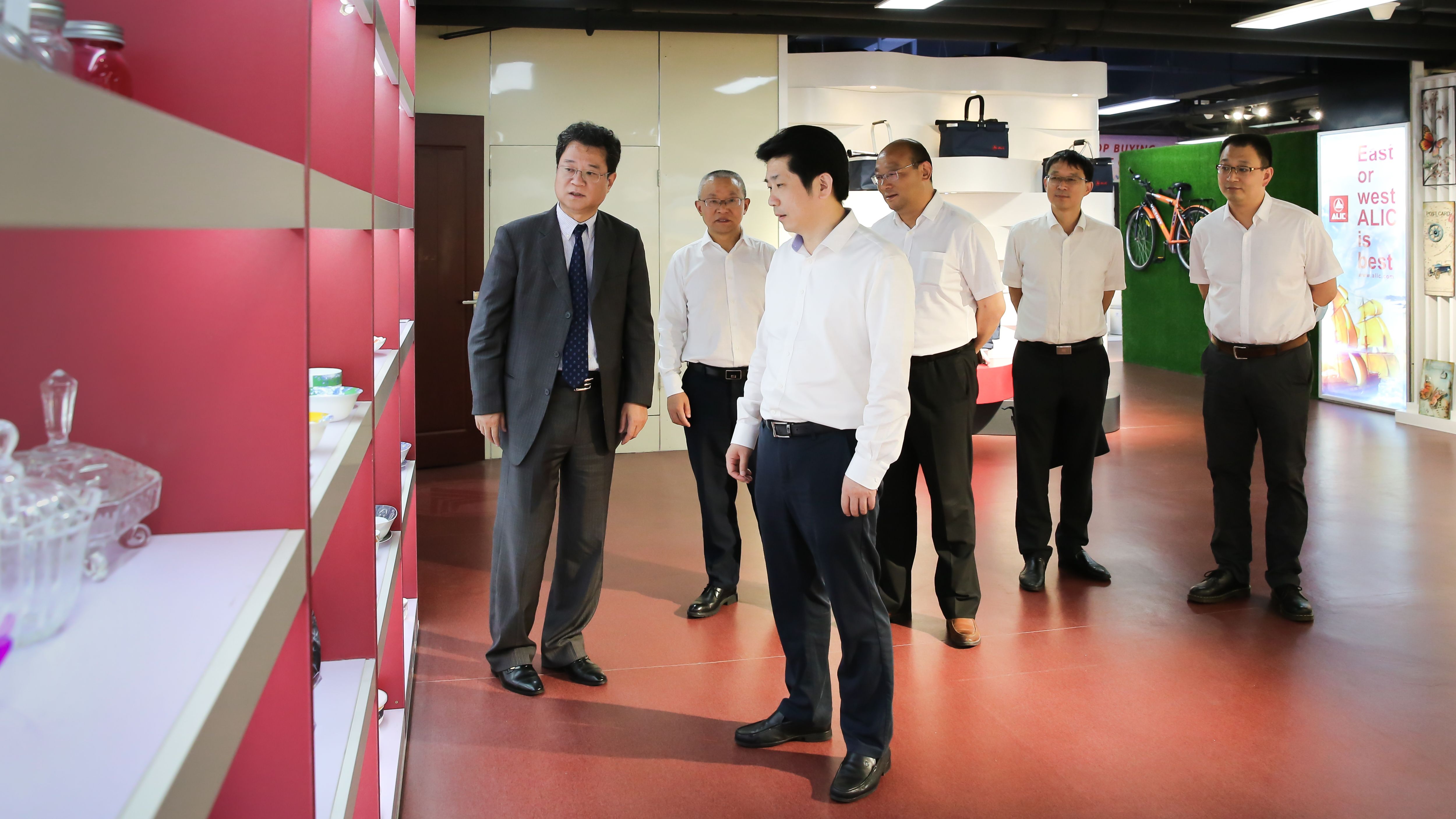 調(diào)研期間,楊軍深入安徽國貿(mào)所屬輕工國際公司業(yè)務一線,現(xiàn)場查看了產(chǎn)品認證檢測中心、進出口商品展廳、黨員活動中心等,詳細了解了業(yè)務出運數(shù)據(jù)、服裝設計研發(fā)等有關情況。