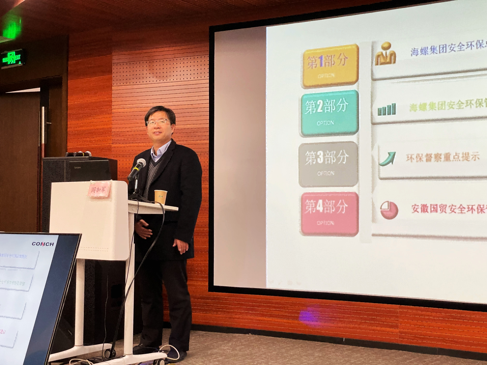 海螺集團(tuán)法律事務(wù)室副主任黃輝以提升國有企業(yè)領(lǐng)導(dǎo)人員憲法意識(shí)的重要性和新安全生產(chǎn)法有關(guān)規(guī)定為重點(diǎn),系統(tǒng)解讀了安全生產(chǎn)領(lǐng)域法治建設(shè)相關(guān)內(nèi)容,并就提高安全生產(chǎn)管理成效提出諸多指導(dǎo)性意見。龍陵海螺水泥有限公司總經(jīng)理閻加軍全面介紹了安全環(huán)保管理的基本要求及省環(huán)保督察組本次督察檢查重點(diǎn),對(duì)安徽國貿(mào)進(jìn)一步提升安全環(huán)保管理水平提出了具體建議。