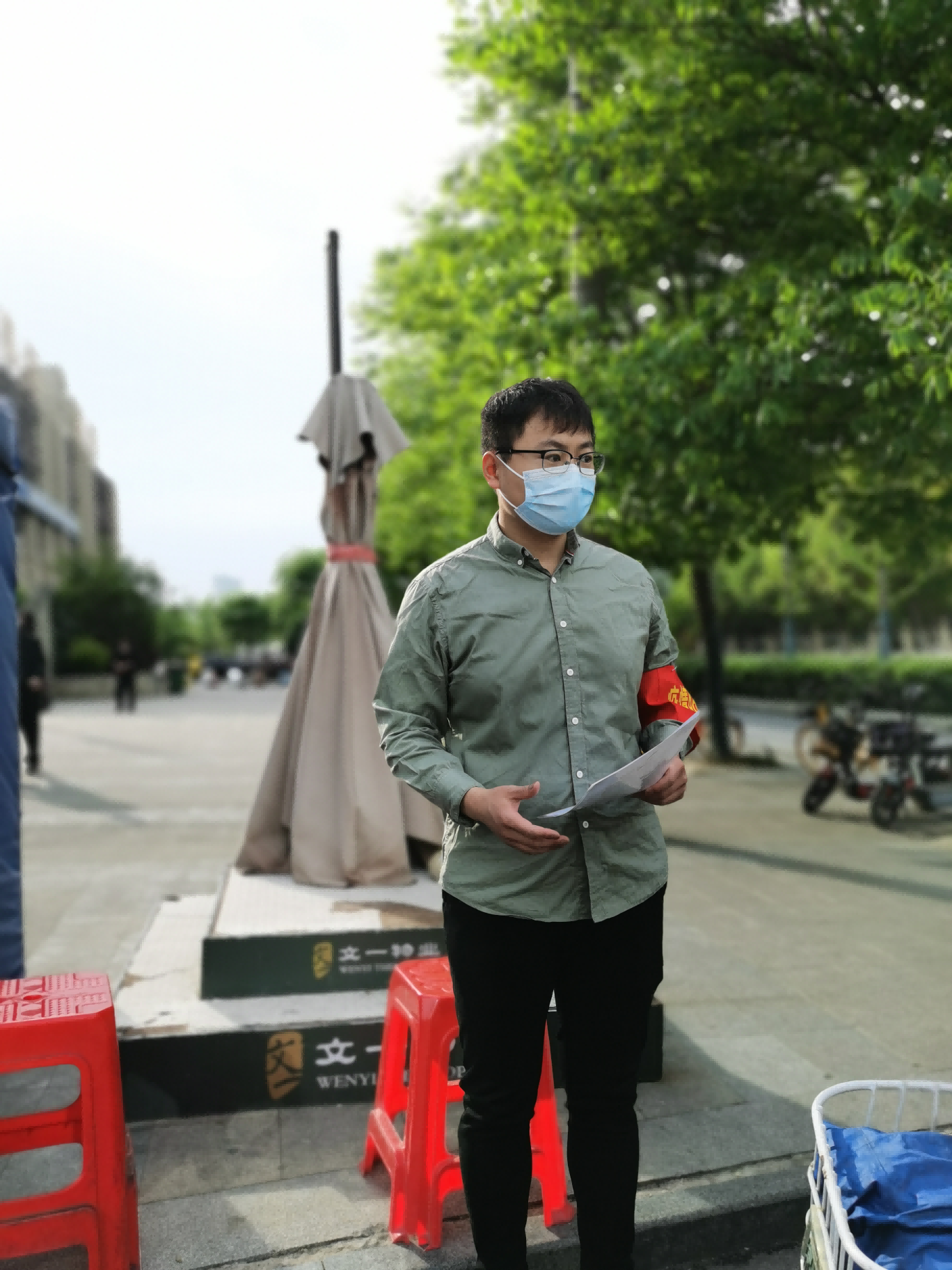 這段時間,周末和工作日下班之后,合肥市文一名門首府小區(qū)門口總會有一個年輕的身影在不停忙碌著,胳膊上的紅色志愿者袖章格外顯眼,他就是安徽輕工國際公司的一名普通共產(chǎn)黨員、進(jìn)口一部員工——馬龍。
